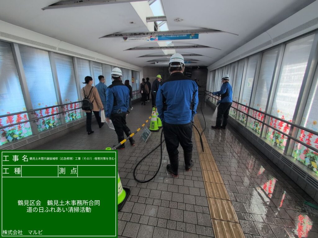 令和7年11月12日、当社は地域貢献活動の一環として、JR鶴見駅東西自由通路にて清掃活動を実施いたしました。